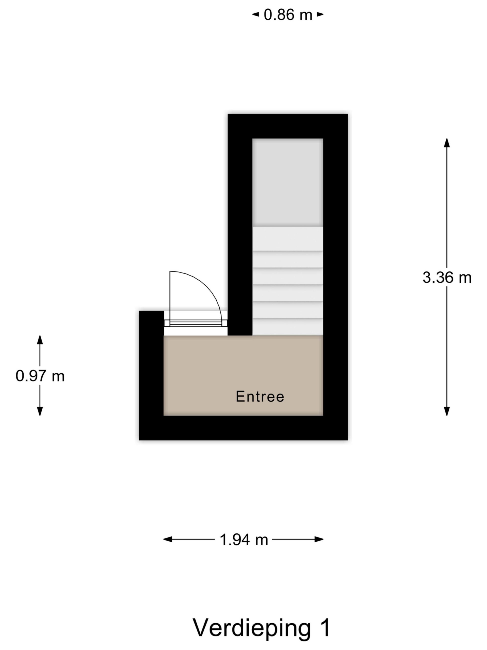 Op de begane grond is de intercom aanwezig, de gedeelde meterkast en de trap naar de eerste verdieping.
