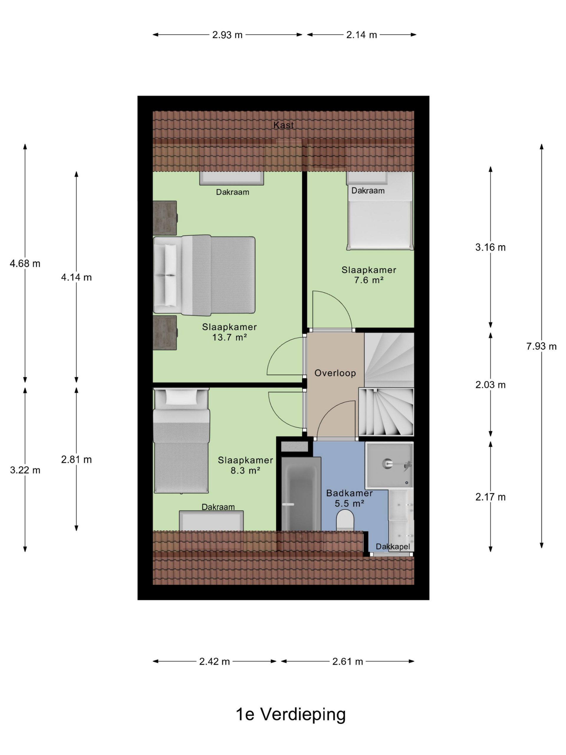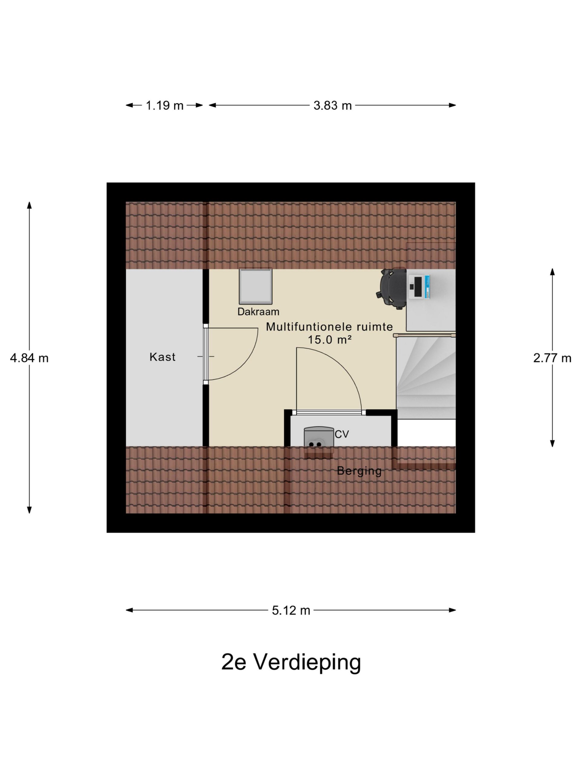 + Grote multifunctionele zolderruimte – in te richten als werkplek, hobbyruimte of extra slaapkamer