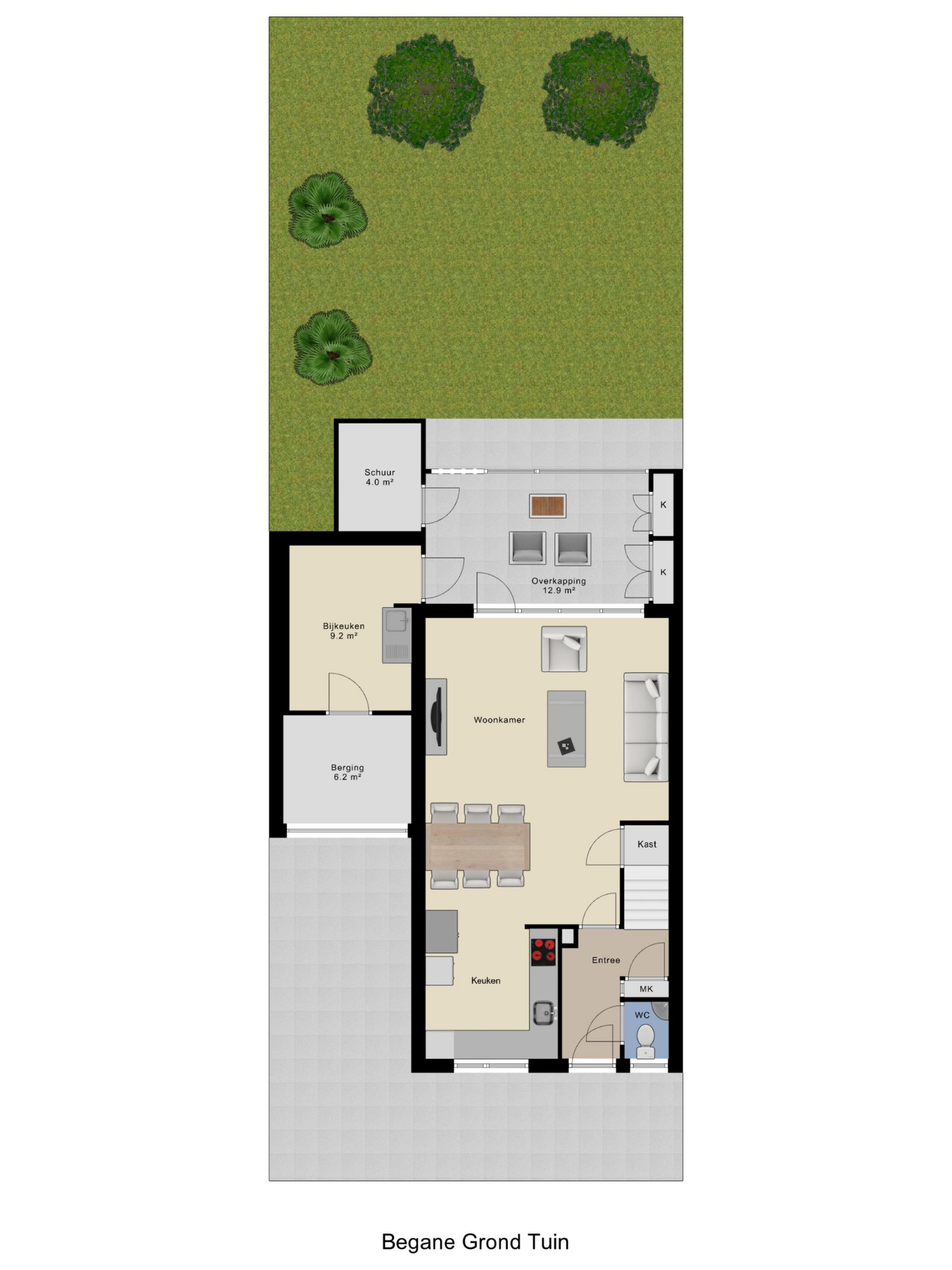 + Diepe achtertuin op het zuidwesten – optimale zonligging en privacy