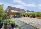 De achtertuin van ongeveer 60 m² is een heerlijke plek om te ontspannen. Je betreedt de tuin via de houten overkapping met ingebouwde kasten. De tuin is verzorgd aangelegd met mooie sierstenen, sierlijke houten plantenbakken en een fraaie houten schutting. Dankzij de ligging op het zuidwesten geniet je hier de hele dag van de zon. Aan de zijkant staat een houten berging voor extra opslag, en daarachter is een handig plekje om de kliko’s netjes uit het zicht te bewaren.