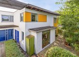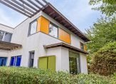 Deze woning onderscheidt zich door zijn unieke en moderne architectuur en speelse indeling met strakke lijnen, wat bijdraagt aan de exclusieve uitstraling. Grote ramen zorgen voor veel lichtinval en de combinatie van natuurlijke materialen geeft het geheel een warme, uitnodigende sfeer.