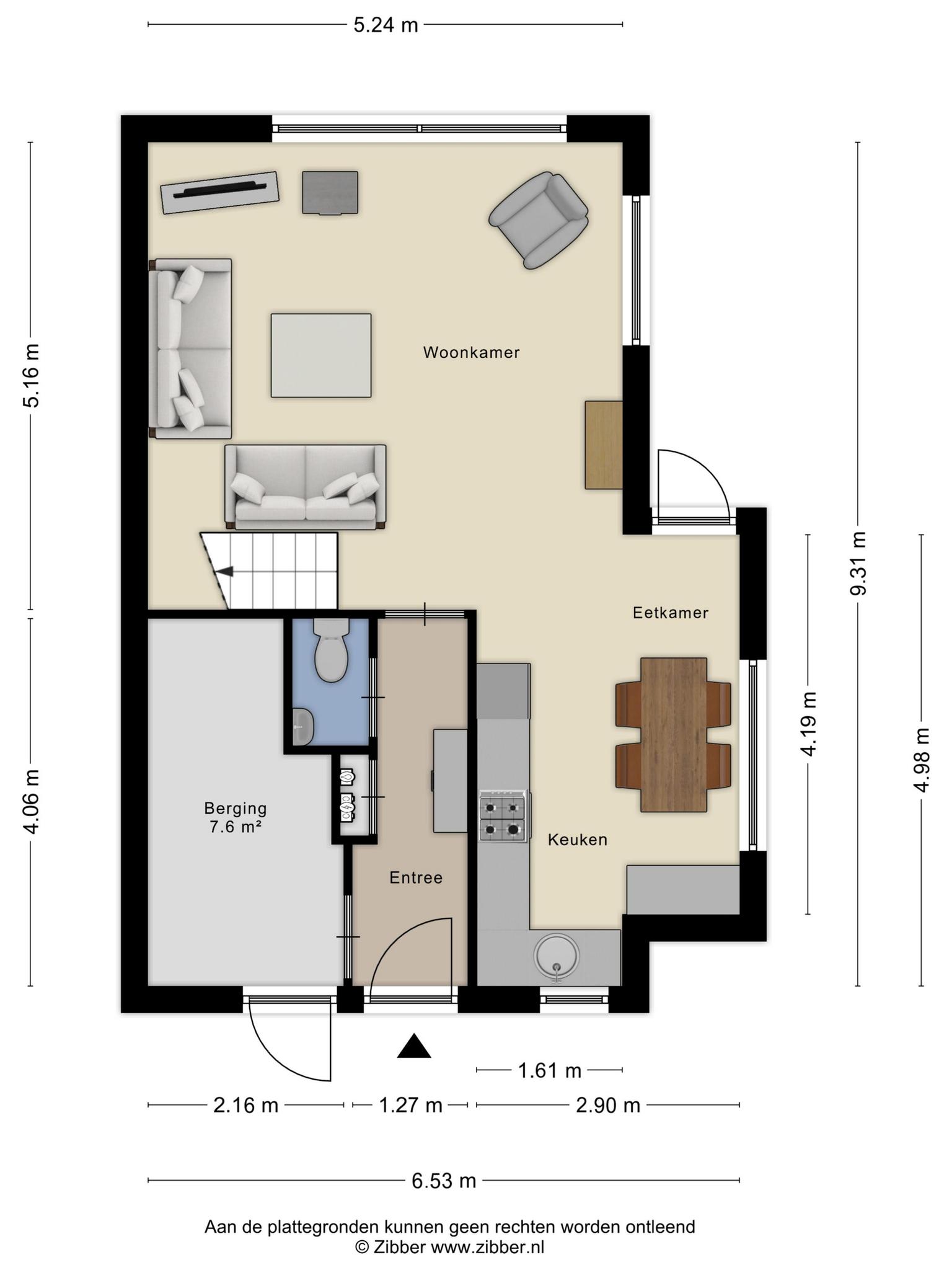 De vermelde afmetingen zijn circa maten. Eventuele afwijkingen tussen de werkelijke en opgegeven circa maten/oppervlakten leiden niet tot enig recht op schadevergoeding. Er kunnen geen rechten worden ontleend aan de inhoud van deze specificaties.