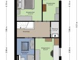 Via de trap in de woonkamer bereik je de eerste verdieping, waar je drie comfortabele slaapkamers vindt van ongeveer 9 m², 9 m² en 13 m².