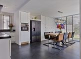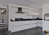 De keuken is modern, strak en van alle gemakken voorzien. Dankzij de uitbouw die in 2021 is gerealiseerd, is dit een royale leefkeuken waar je met plezier kookt terwijl je in contact blijft met de rest van het gezin.