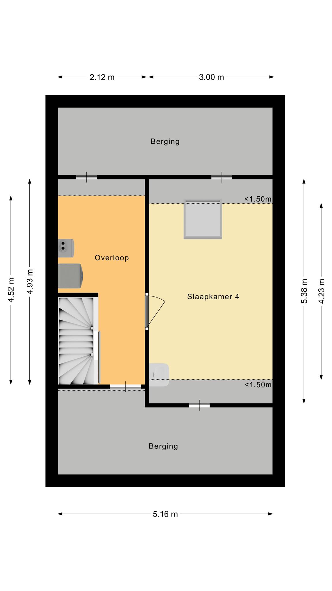 Op de tweede verdieping bevindt zich een vierde slaapkamer, die uitstekend gebruikt kan worden als extra slaapkamer, werkkamer of hobbyruimte.