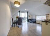 Via de gezamenlijke entree bereik je het appartement. De lichte woonkamer is een fijne plek om thuis te komen en biedt voldoende ruimte voor een comfortabele zithoek en eethoek. Grote ramen en het Franse balkon zorgen voor veel daglicht en een open gevoel.