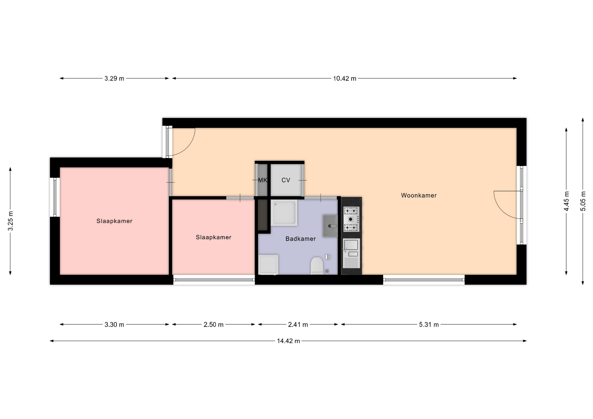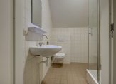 Verder beschikt de woning over twee slaapkamers. De hoofdslaapkamer is prettig van formaat en de tweede kamer is ideaal als thuiswerkplek, logeerkamer of extra bergruimte. De badkamer is functioneel ingericht met douche en wastafel, en er is een separate toiletruimte aanwezig.