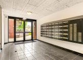 Afgesloten entree met bellentableau en brievenbussen. Een centrale hal met trap, lift en een gezamenlijke fietsen- en scooterberging.