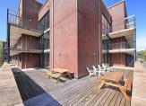 2e Verdieping: Entree, hal met meterkast. Slaapkamer aan de voorzijde, tweede slaapkamer aan de achterzijde. De woonkamer heeft via de schuifpui toegang tot een balkon en staat in open verbinding met de moderne hoekkeuken, voorzien van de nodige inbouwapparatuur. De badkamer is voorzien van een inloopdouche met glazen douchedeur, wastafelmeubel en aansluiting voor wasmachine en droger. Separaat toilet.