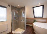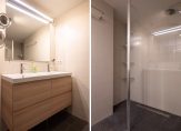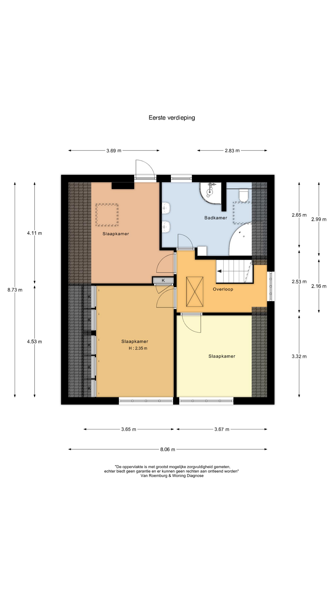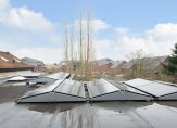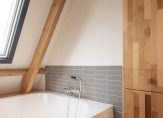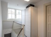 Eerste verdieping: Overloop, slaapkamer 1 (ca. 17 m2) met lage en hoge inbouwkast, slaapkamer 2 (ca. 12 m2), slaapkamer 3 (ca. 15 m2) met een deur naar het platte dak, moderne badkamer met dubbele vaste wastafel, aparte doucheruimte, duo hoekligbad en een vrijdragend toilet.