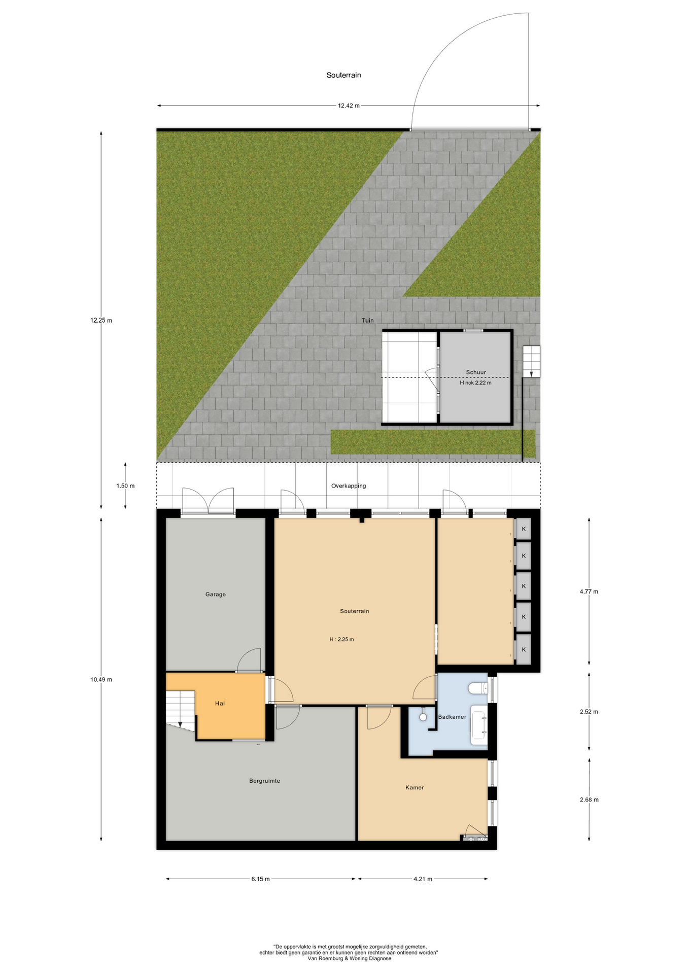 Souterrain: Royaal souterrain van maar liefst 116 m2, opgedeeld in diverse ruimtes. Eén riante kamer van 32 m2 te gebruiken als kantoor/atelier/sportruimte met een doorgang naar een ruimte van 15 m2 die voorzien van een volledige kastenwand. Deze kamers hebben zicht op en directe toegang tot de achtertuin welke te bereiken is middels een royale toegangspoort. In het souterrain bevindt zich verder een bergkamer, een extra kamer en een moderne badkamer met een toilet, dubbele wastafelmeubel en een doucheruimte plus een inpandige garage van 16 m2. Het souterrain is gelijkvloers met de achtertuin, waar genoeg parkeerruimte is voor auto’s/caravan/aanhanger. In deze tuin staat een ruim tuinhuis met overkapping.