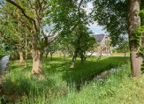 De diepe tuin ligt rondom de woning en is deels in 2019 aangelegd. Je hebt hier meerdere terrassen, kleurrijke hortensia’s en je eigen boomgaard met appel- en perenbomen. De ligging op een perceel van circa 1.814 m² geeft je alle ruimte én veel privacy.