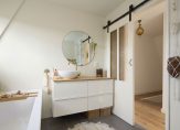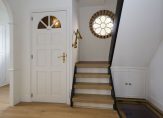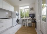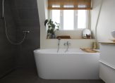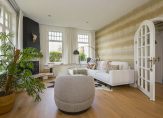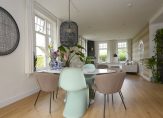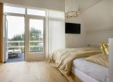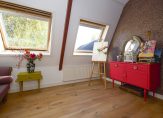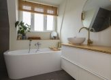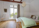 Op de eerste verdieping vind je drie slaapkamers, waarvan twee met openslaande deuren, ideaal om van de frisse lucht en het uitzicht te genieten. De badkamer is voorzien van een ligbad, douche, toilet en wastafelmeubel, met een kiep-kantelraam voor daglicht en ventilatie. Authentieke details zoals markiezen en in stijl herstelde kozijnen geven de woning extra karakter, terwijl moderne aanpassingen zorgen voor comfort zonder concessies.