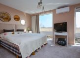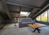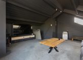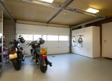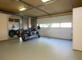 Op deze ferme landtong treffen wij een alleszins ruim hoofdgebouw met woon- en genietfunctie. Van kop tot staart; de voorzijde behelst een dubbele garage voorzien van vloerverwarming en een separate berging welke dienst doet als entree. Deze heeft op zijn beurt een vaste trapopgang naar een slaapkamer/kantoor dan wel “mancave”. Deze etage loopt over de gehele diepte van de villa, maar is feitelijk gesplitst in twee delen. De andere zijde van de etage is bereikbaar via de tweede vaste trap.