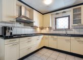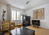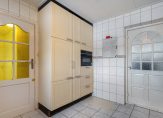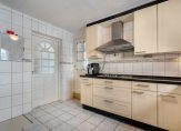 Aan de voorzijde bevindt zich de royale woonkamer, voorzien van veel daglicht en een sfeervolle speksteenkachel. De dichte keuken is uitgerust met een keukenblok en diverse inbouwapparatuur en biedt toegang tot de bijkeuken.