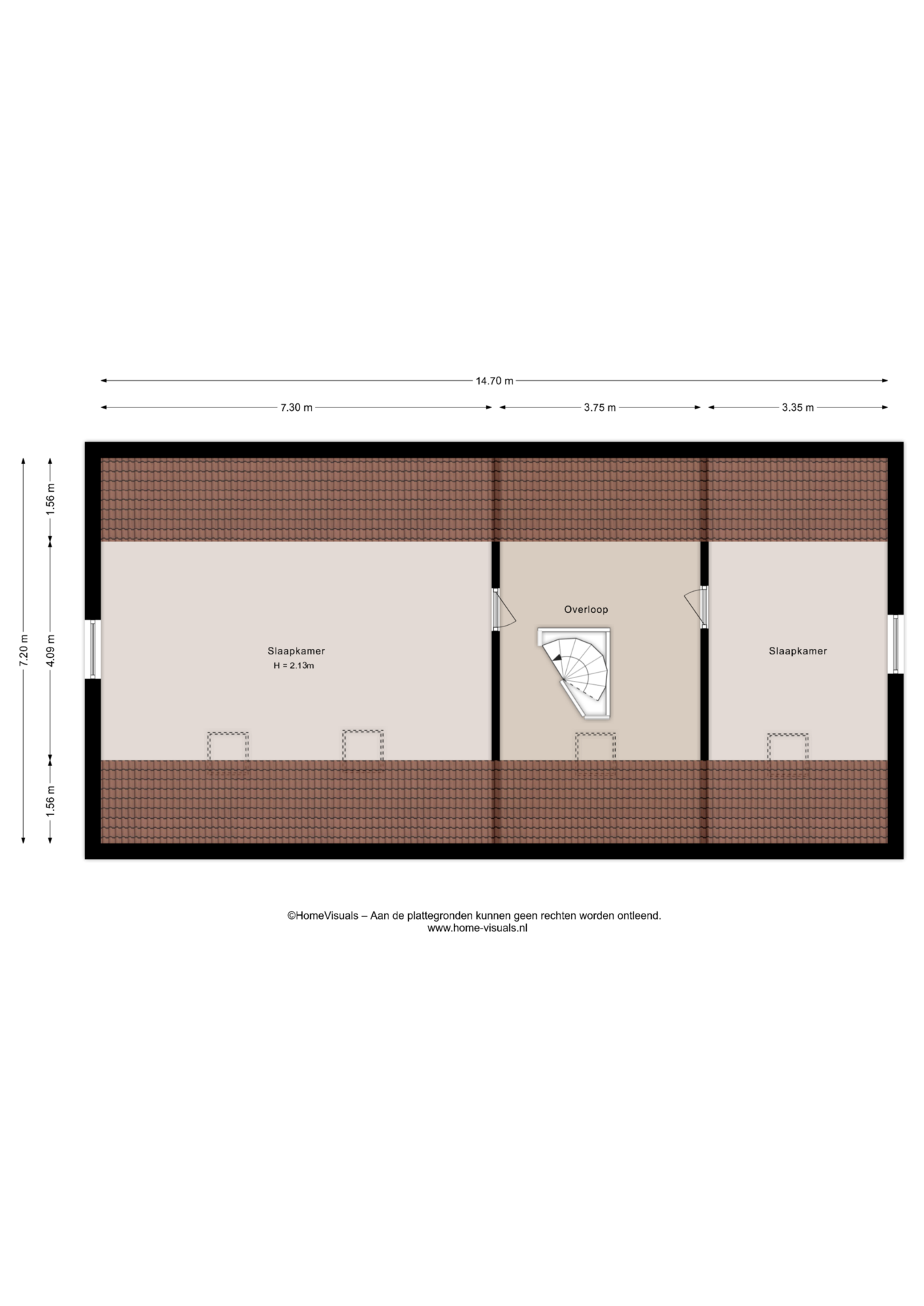 De overloop beschikt over bergruimte en geeft toegang tot twee riante slaapkamers.