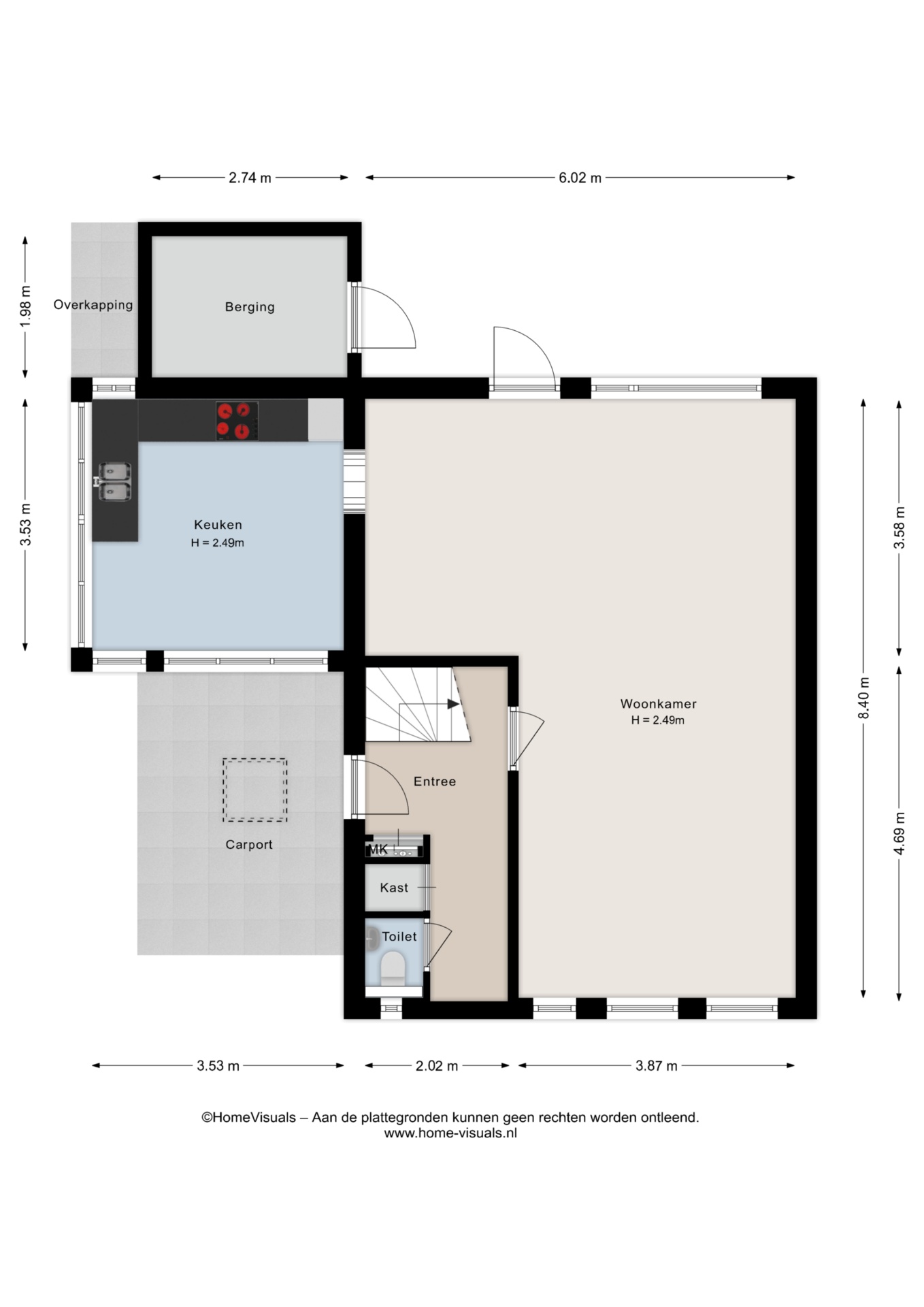 Via de entree kom je binnen in de hal met meterkast, trapopgang, kastruimte en een toilet. De ruime woonkamer valt direct op door de grote raampartijen en de prettige lichtinval, wat zorgt voor een open en aangename sfeer.