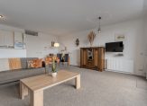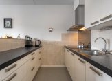 Aan het einde van de hal kom je uit in de open keuken en woonkamer. De keuken is uitgevoerd in een lichte kleurstelling en beschikt over een schiereiland. Via de schuifpui in de woonkamer stap je zo het royale zuidgerichte terras op (ca. 12 m²).