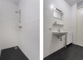 Hal/entree, toilet, twee slaapkamers, een nette badkamer met inloopdouche en een bijkeuken met wasmachineaansluiting.