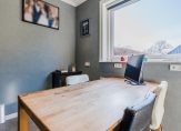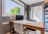 Bij binnenkomst tref je een ruime hal met toilet, trapopgang en trapkast. De sfeervolle L-vormige woonkamer biedt veel lichtinval en ruimte. De aangrenzende woonkeuken is voorzien van inbouwapparatuur en een schuifpui die toegang geeft tot de overkapping. Vanuit hier bereik je tevens de kantoorruimte, ideaal voor thuiswerken.