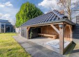 De fraai aangelegde tuin op het zuiden zorgt ervoor dat je de hele dag door van de zon kunt genieten. Het royale gazon en de sfeervolle overkapping maken het een heerlijke plek om te ontspannen. De voortuin is eveneens keurig aangelegd en de ruime oprit biedt parkeergelegenheid voor twee auto’s. Achter in de tuin staat een geïsoleerde berging die ook dienst kan doen als werkplaats en is voorzien van dubbele deuren en krachtstroom.