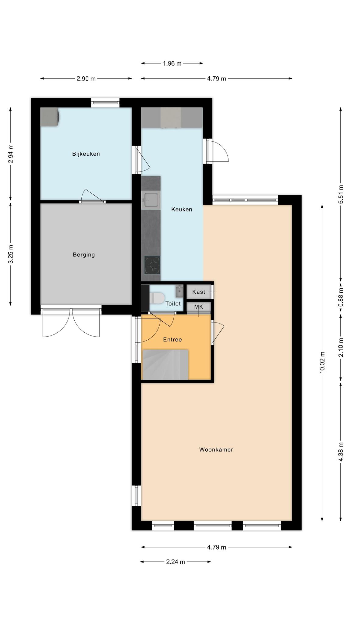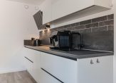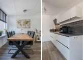 Je komt binnen in de hal met toilet en toegang tot de lichte woonkamer. De open keuken uit 2020 is modern en praktisch ingericht en grenst aan de bijkeuken en de garage. Hier heb je genoeg ruimte voor opslag en dagelijkse klusjes.