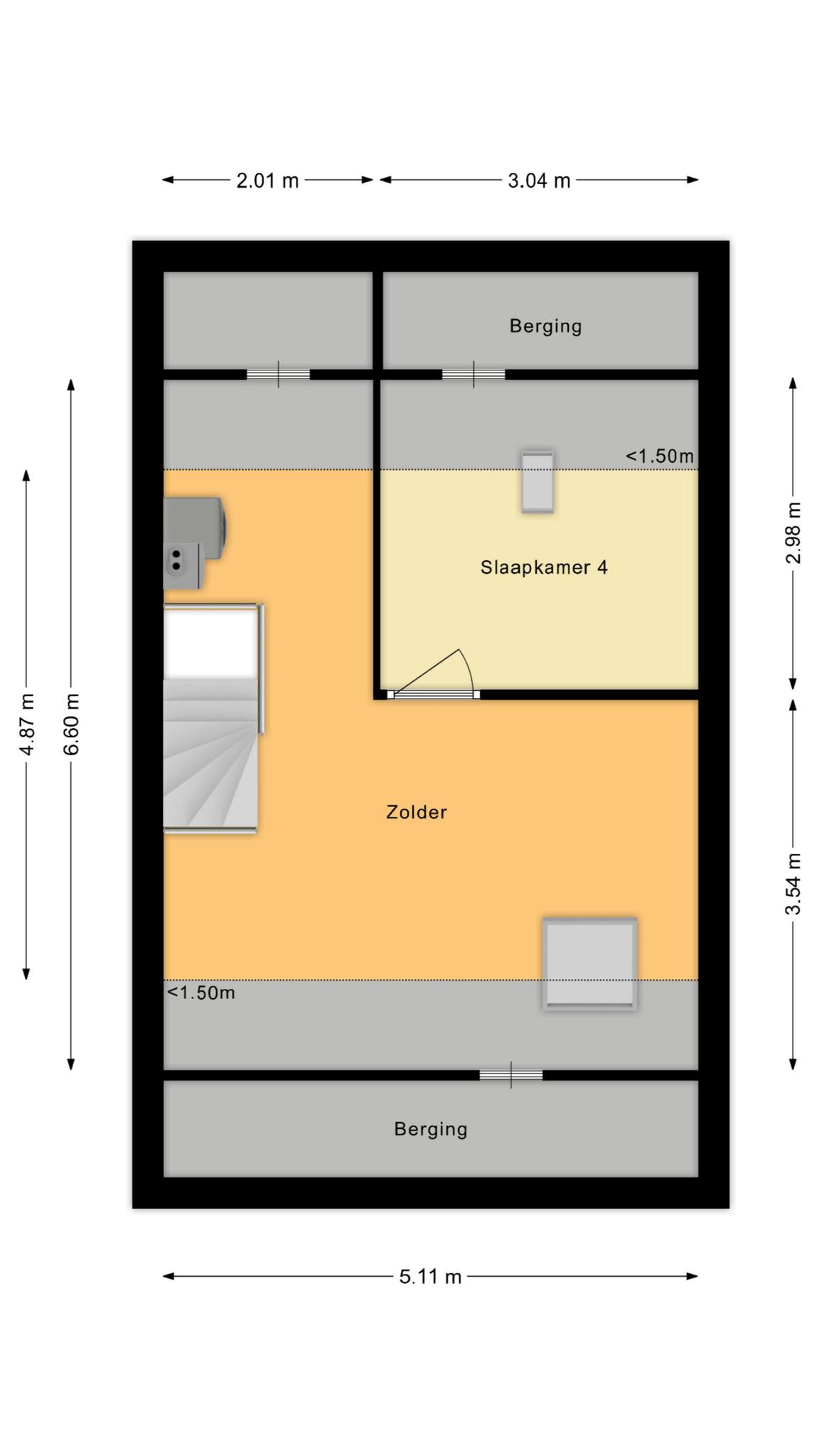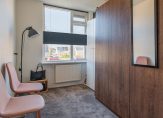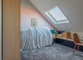 De ruime tweede verdieping is netjes afgewerkt en biedt veel mogelijkheden. Je vindt hier een vierde slaapkamer, de opstelling voor de cv-ketel, wasmachine en droger. Dankzij de twee dakramen is de ruimte licht en goed te gebruiken als werkkamer of hobbyruimte.