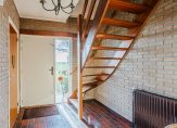 Bij binnenkomst in de hal/entree heb je toegang tot alle belangrijke ruimtes op de begane grond. De woonkamer biedt veel natuurlijk licht door de grote raampartijen en kijkt uit over het groene landschap. De keuken is praktisch ingedeeld en biedt voldoende ruimte voor een gezellige eethoek. Via de bijkeuken kom je in de berging en de ruime garage, waar je makkelijk je auto kunt parkeren of extra opslagruimte hebt.