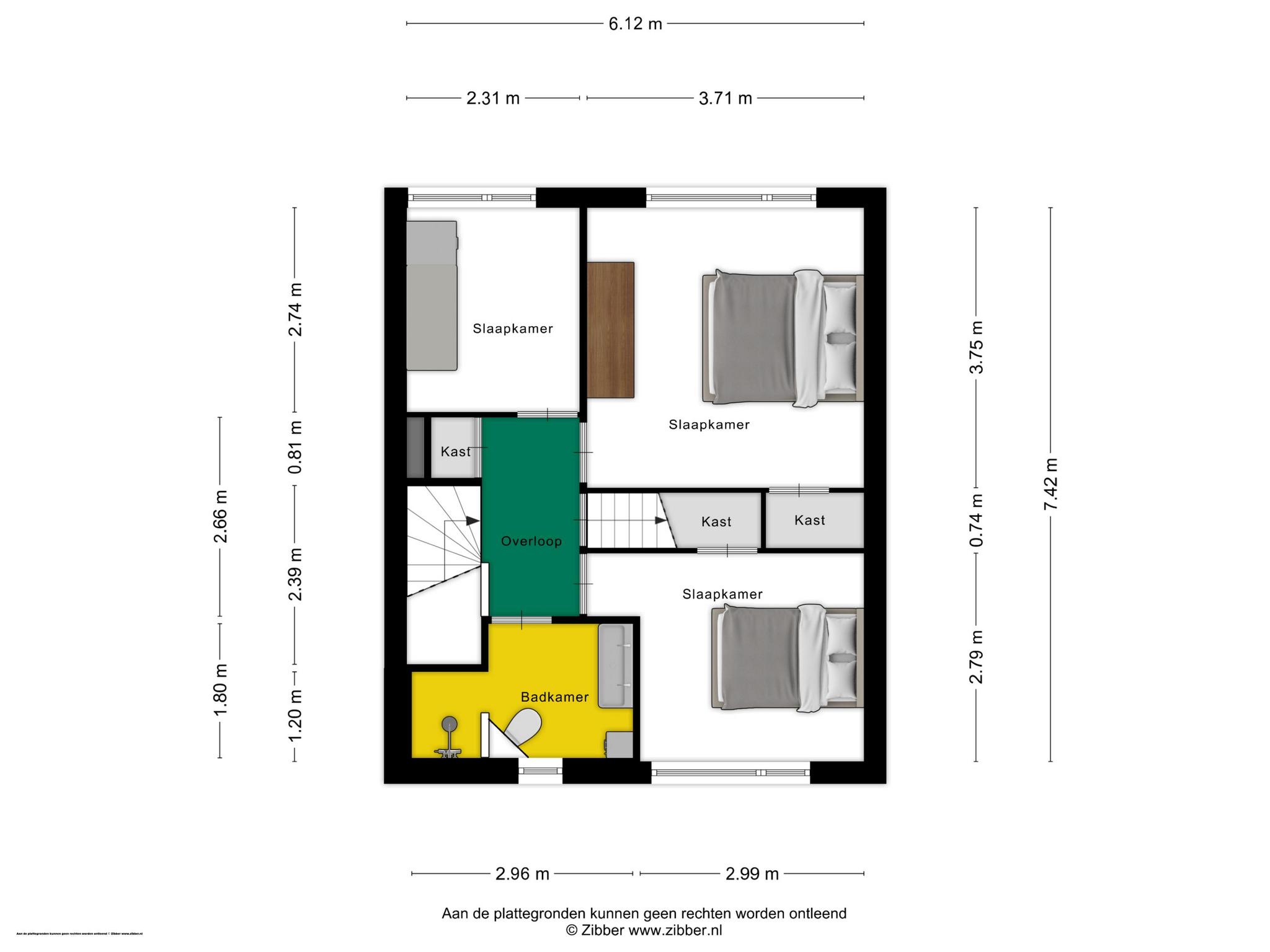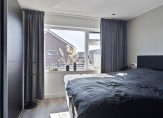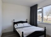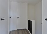 Vanaf de overloop zijn drie slaapkamers, de badkamer en een bergkast te bereiken. Aan de voorzijde is een ruime slaapkamer met inbouwkast en aan de achterzijde zijn twee slaapkamers, waaronder de master bedroom met inbouwkast. In alle slaapkamers ligt laminaat en ook op deze verdieping zijn de muren en plafonds gestuct.