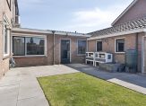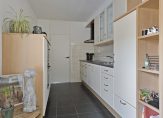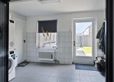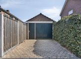 In het verlengde van de keuken is de ruime bijkeuken, die door de bewoners als dagelijkse entree wordt gebruikt. Naast de kastenwand met schuifdeuren is ruimte voor een kapstok en er is plek voor een wasmachine, droger, vriezer en andere spullen. De inpandig te bereiken, in spouw gebouwde garage is een fijne ruimte voor de auto-/motorliefhebber en te gebruiken als hobbyruimte.