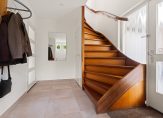 Via de entree kom je in de hal met toegang tot de meterkast, toiletruimte, trapopgang en toegang tot de kelder. De hal is voorzien van keramische tegelvloer. De woonkamer heeft een pvc-vloer met vloerverwarming en zorgt voor een moderne en warme uitstraling.