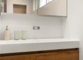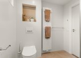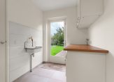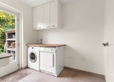Vanuit de keuken bereik je de bijkeuken, waar plaats is voor de wasmachine en extra bergruimte.