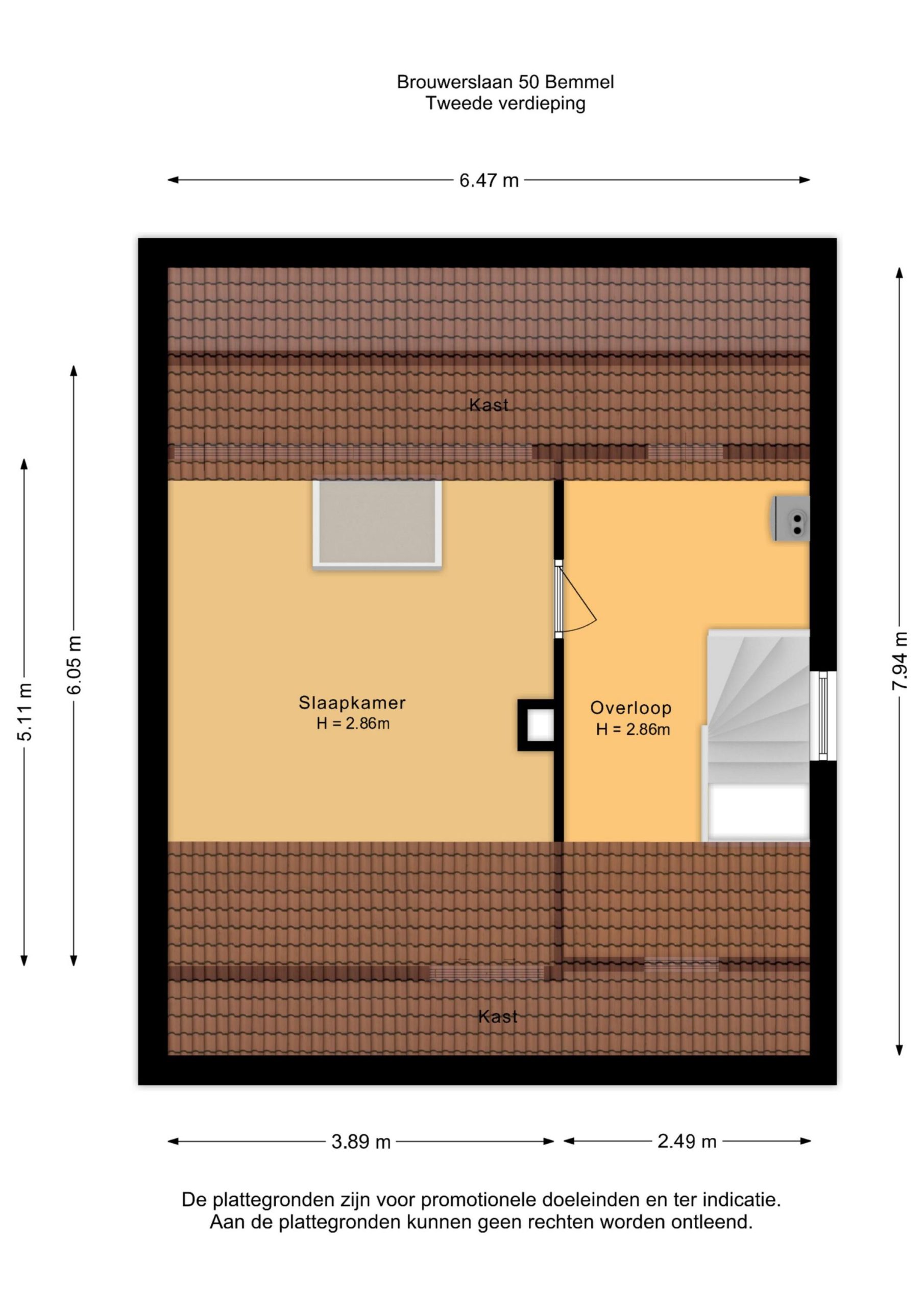 De tweede verdieping, voorzien van laminaatvloer, bestaat uit een voorzolder met cv-ketel en een omvormer. Een zolderkamer met dakramen met dubbel glas en zonwering. De verdieping is geïsoleerd en biedt mogelijkheden als extra slaapkamer, hobbykamer of werkkamer.