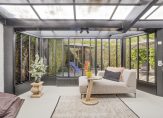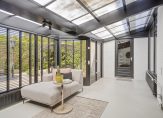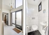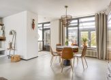 Via de ruime hal met toilet en trapkast stap je de lichte, Z-vormige, verrassend ruime woonkamer binnen. Grote raampartijen zorgen hier voor prettige lichtinval en een fijne, open sfeer. Aansluitend vind je de keuken en een sfeervolle serre. De keuken ligt aan de achterzijde en sluit aan op de serre, een heerlijke extra leefruimte met openslaande deuren naar de tuin. Hier geniet je volop van binnen én buiten. Vanuit de serre is er directe toegang tot de garage, ideaal als berging, klus- of hobbyruimte.