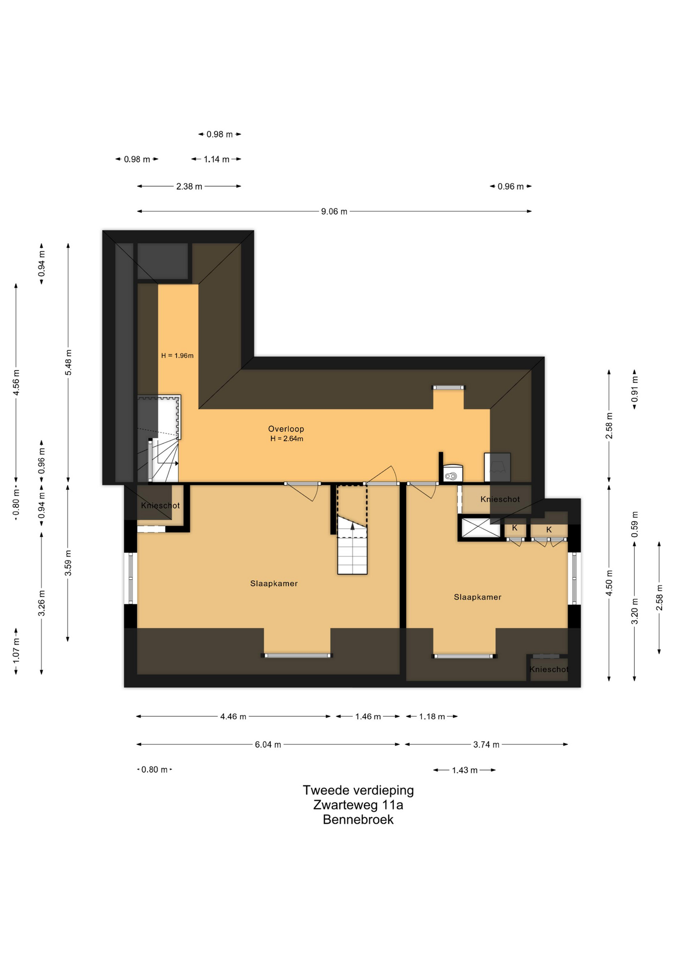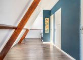 Ruime overloop met de opstelling van de CV-ketel en wasmachine, twee ruime slaapkamers en veel extra bergruimte (bergzolder).
