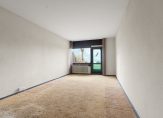 Vanuit de hal van de woning stap je de riante lichte woonkamer binnen, voorzien van dubbel glas en een directe deur naar het terras. De open keuken is gedateerd maar uitgevoerd in massief hout.