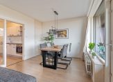 Met de lift kunt u naar de derde verdieping waar het appartement te vinden is. Via de entree komt u in de hal met toegang tot het toilet, een praktische berging en de boileropstelling. De lichte L-vormige woonkamer is afgewerkt met een laminaatvloer en biedt een mooi, vrij uitzicht.