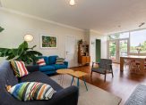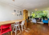 Entree, hal met toilet, toegang tot de kelderverdieping (garderobe). De lichte doorzon woonkamer heeft openslaande deuren naar de tuin/terras. De dichte keuken (2008) is voorzien van diverse inbouwapparatuur en biedt eveneens toegang tot de tuin.