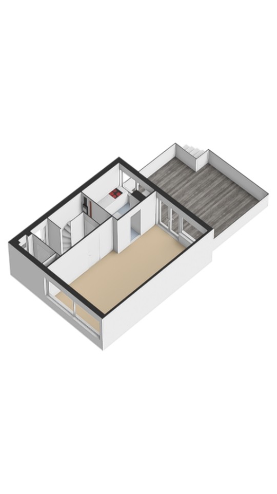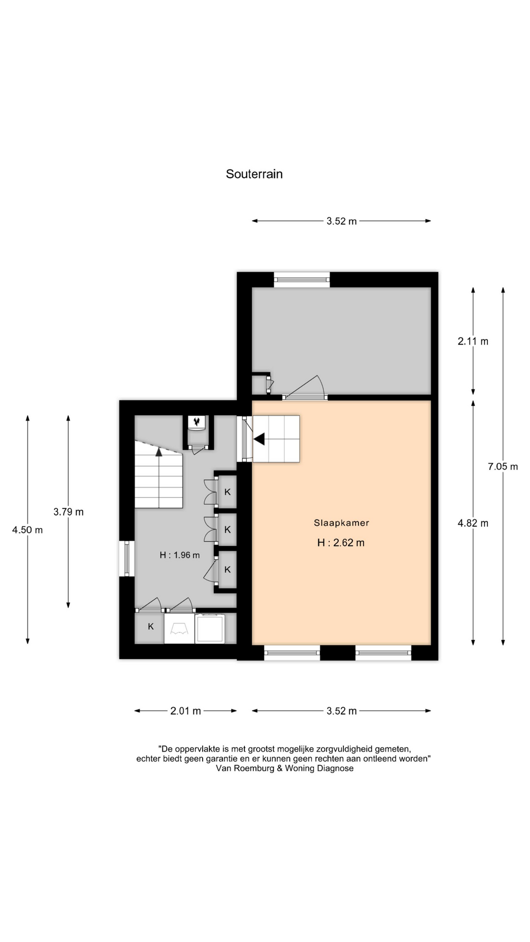 * Inpandige ruimte (souterrain): volledig afgewerkt en in gebruik als slaapkamer