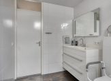 Overloop met tapijt vloer. Slaapkamer 1 aan de voorzijde met tapijt vloer en inbouwkast. Slaapkamer 2 en 3 bevinden zich aan de achterzijde en zijn beide voorzien van een laminaatvloer. Prachtige, moderne en lichte badkamer aan de voorzijde. De volledig betegelde badkamer is vernieuwd in 2015 en is voorzien van een inloopdouche, hangcloset, wastafel met meubel, decorradiator en inbouwspots. Voor extra daglicht is er een Velux dakraam geplaatst! Zeer ruime slaapkamer 4 boven de garage met laminaatvloer, stucwerk wanden, rolluiken en bergkast.