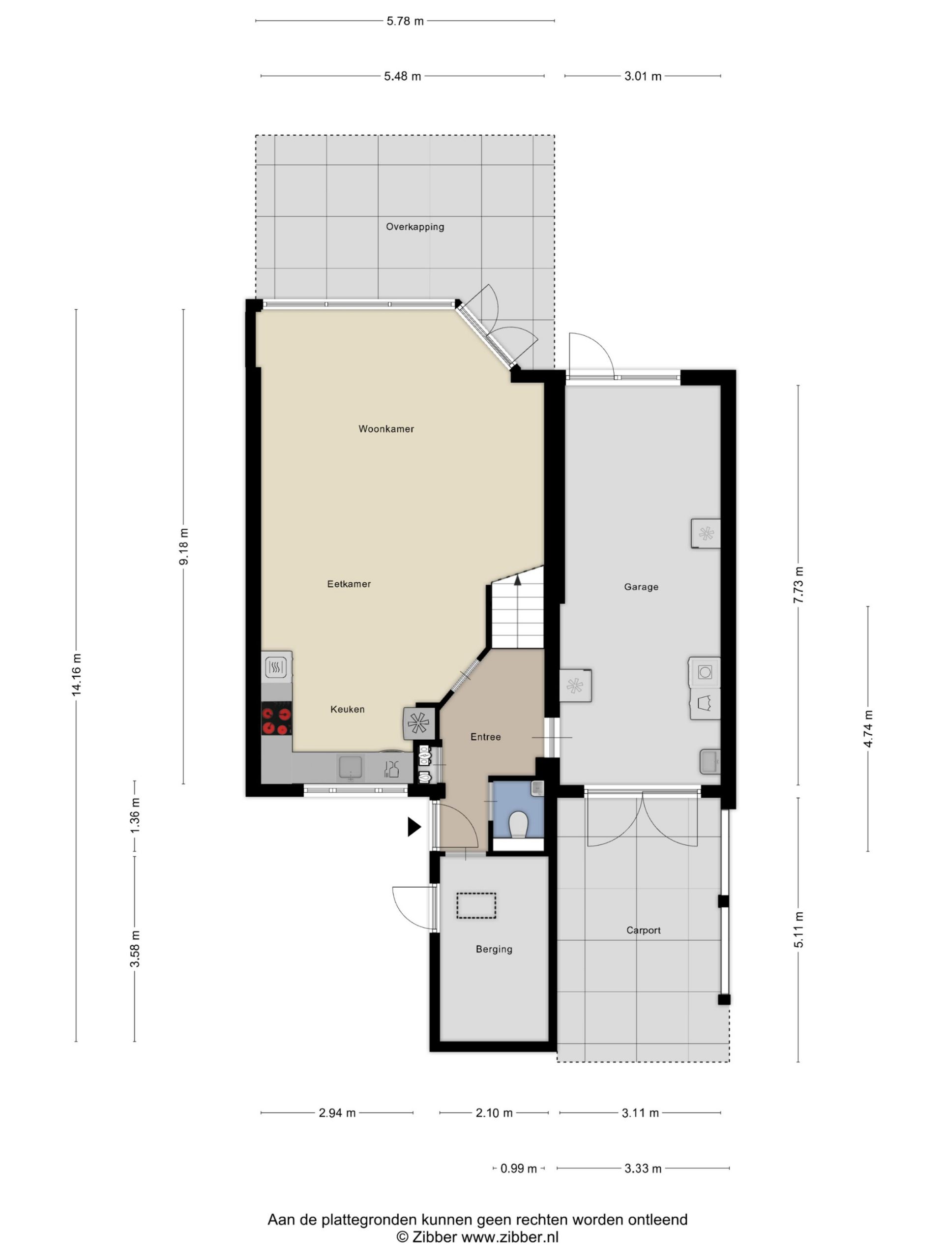 Ruime berging aan de voorzijde met tegelvloer, elektra en een zeer ruime berg vliering. Deze berging is bereikbaar vanuit de voortuin en vanuit de hal. Inpandige garage van maarliefst 24 m2 met deur naar de achtertuin, 2x openslaande deuren naar de carport aan de voorzijde, voorzien van elektra, stortbak en aansluitingen voor de wasapparatuur. Royale carport aan de voorzijde.