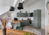 Ruime, lichte woonkeuken met laminaat vloer en stucwerk wandafwerking. De keuken is voorzien van een hoog plafond wat een extra ruimtelijk gevoel geeft. In 2024 is de keuken verruimd met een flinke dakkapel met kunststof kozijnen met HR++ glas! De U-vormige keuken opstelling is in 2021 vernieuwd, deze is voorzien van diverse inbouwapparatuur: inductie kookplaat, afzuigkap, vaatwasser, combi oven/magnetron, diepvries, koelkast en verschillende opbergkastjes en lades. Middels een overloop/hal toegang tot de slaapkamers en de badkamer. De overloop/hal is voorzien van een laminaat vloer, stucwerk wandafwerking en een luik wat toegang biedt tot de bergzolder.
