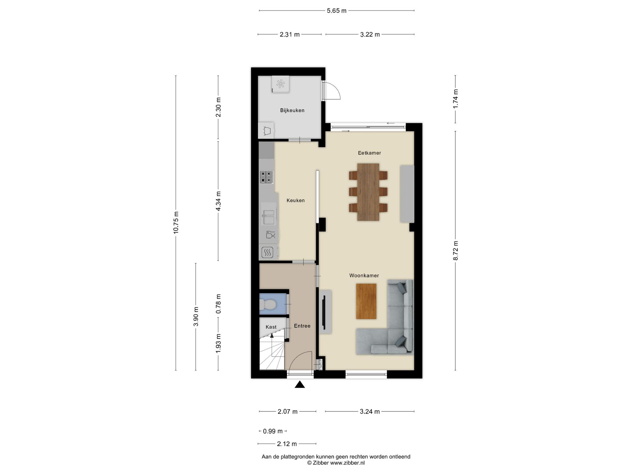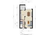 Overdekte entree. Hal met tegelvloer, stucwerk wanden en praktische trap/provisiekast. Meterkast met 8 groepen en 2 aardlekschakelaars. Deels betegeld toilet. Woonkamer met parket vloer stucwerk wandafwerking en schuifpui aan de achterzijde met tegelvloer. Het raam aan de voorzijde is voorzien van een zonneluifel. Aan de achterzijde is de woonkamer uitgebouwd. Half open keuken aan de achterzijde met tegelvloer en deels betegelde wandafwerking. Rechte keukenopstelling met verschillende inbouwapparatuur; gaskookplaat, afzuigkap, koelkast, combi oven/magnetron, diepvries en verschillende opbergkastjes en lades. Fraaie bar tussen de keuken en woonkamer. Praktische bijkeuken met tegel vloer, betegelde wandafwerking en deur naar de achtertuin. In de bijkeuken bevindt zich de wasmachine-aansluiting en CV ketel (Remeha, bouwjaar 2012).
