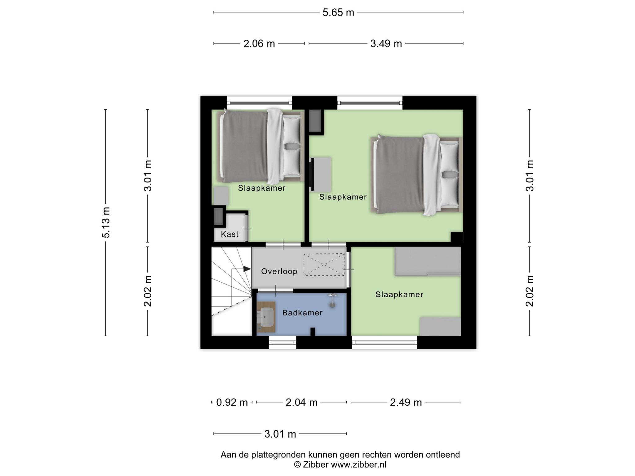 Overloop met laminaatvloer, stucwerk wandafwerking en luik welke toegang biedt tot de bergzolder. Slaapkamer 1 aan achterzijde met laminaatvloer, stucwerk wanden, inbouwkast en rolluik. Slaapkamer 2 aan de achterzijde met laminaatvloer, stucwerk wanden en rolluik. Slaapkamer 3 aan de voorzijde met laminaat vloer en rolluik. Geheel betegelde badkamer met douche, wastafel met meubel en decorradiator.
