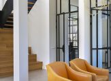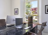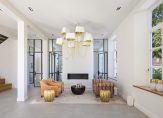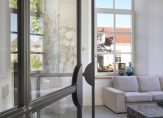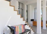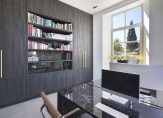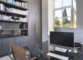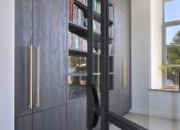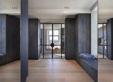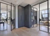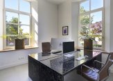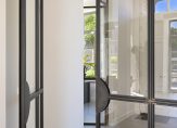 Je betreedt de woning via de royale entree/hal met een indrukwekkende hoogte en prachtige stalen deuren die voor veel transparantie en lichtinval zorgen. Aan de ene zijde van de hal vind je een stijlvolle kantoor- of ontvangstruimte, ideaal voor werken aan huis. Aan de andere zijde bevindt zich een studeer- of televisiekamer.