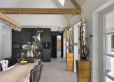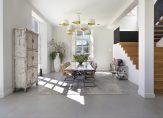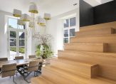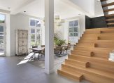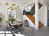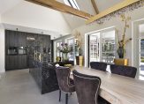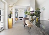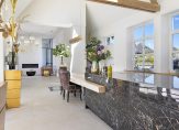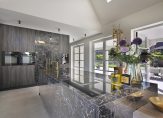 De overweldigende woonkamer met fantastische plafondhoogte vormt het kloppend hart van de woning. De luxe trappartij naar de verdieping sluit naadloos aan op de achtergelegen, zeer luxe keuken, uiteraard voorzien van alle denkbare moderne apparatuur — een droom voor elke kookliefhebber.