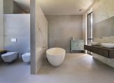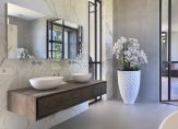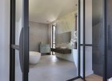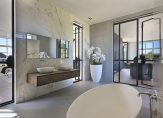 Verder beschikt de begane grond over een luxe toiletruimte met natuurstenen afwerking en een achtergelegen multifunctionele ruimte die momenteel als gym wordt gebruikt. Hier zijn tevens alle voorbereidingen getroffen voor de realisatie van een sauna en stoombad.
