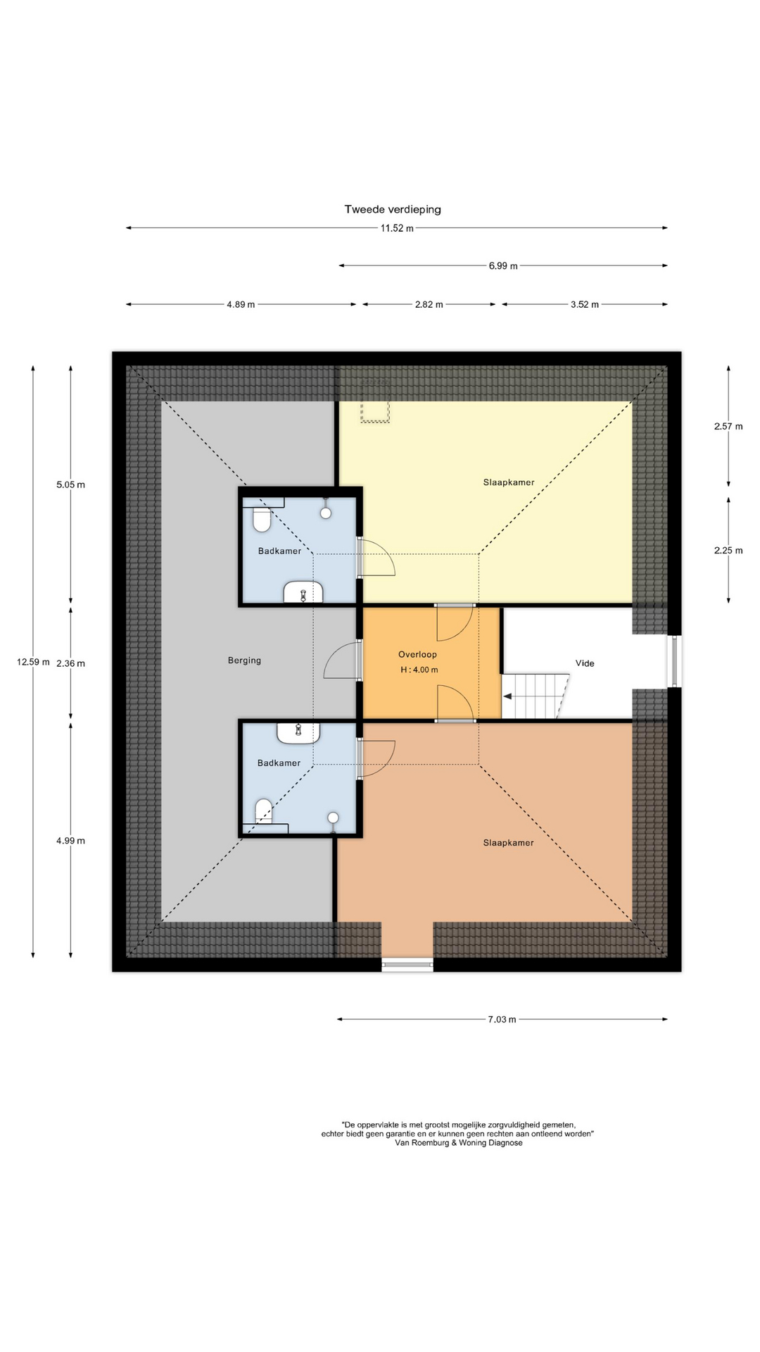 Deze verdieping biedt een overloop, twee ruime slaapkamers en twee reeds gedeeltelijk gerealiseerde badkamers. Daarnaast is er een royale berging, ideaal voor extra opslag.