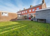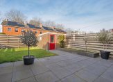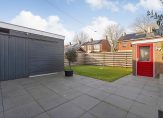 Vanuit de keuken stap je direct de diepe achtertuin in, waar je tot laat in de avond van de zon kunt genieten.