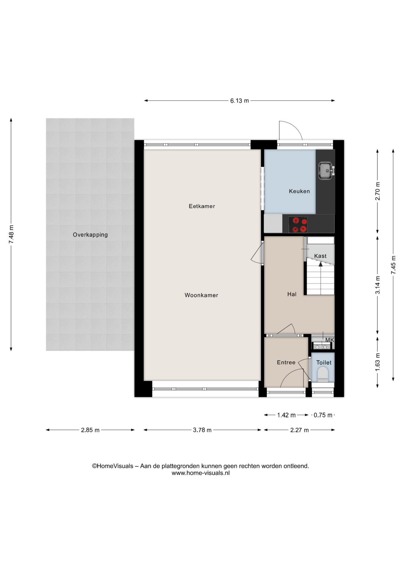 Bij binnenkomst in de woning word je verwelkomd in de entree, waar ruimte is om je jas op te hangen en direct toegang is tot het toilet. De hal met trapopgang leidt je naar de lichte en sfeervolle woonkamer. Dankzij de grote raampartijen geniet je hier van een prachtige lichtinval, wat de ruimte een warme en open uitstraling geeft.